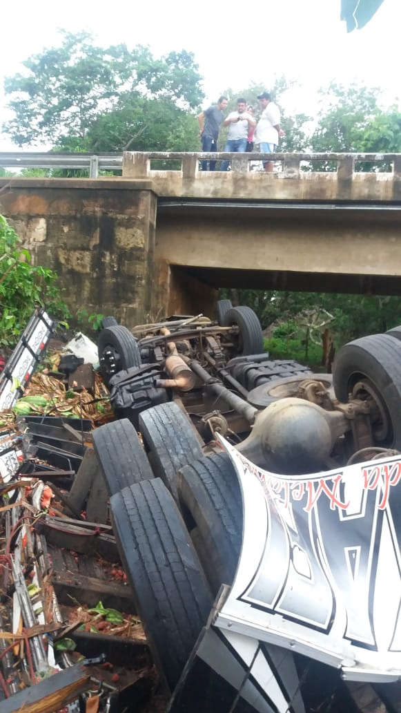 O motorista de um caminhão morreu esmagado na manhã desta segunda-feira (7) depois que o veículo caiu de uma ponte na BR-316, no município de Valença do Piauí. Nas imagens divulgadas pela PRF é possível ver que o caminhão estava carregado de melancias.